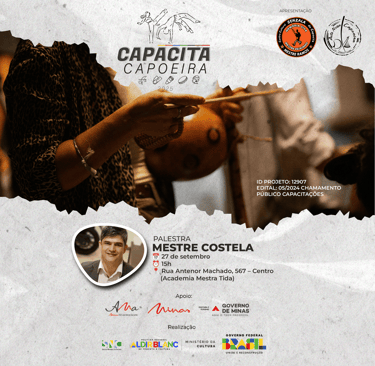 O Capacita Capoeira nasceu para preservar, compartilhar e fortalecer os saberes tradicionais da capoeira e das manifestações afro-brasileiras. Por meio de oficinas formativas e encontros culturais, 9 mestres experientes transmitem muito mais que técnica: passam história, cultura e valores da capoeira. Exclusivo para graduados, professores, mestres e contramestres que desejam se qualificar e elevar sua prática profissional na capoeira.
