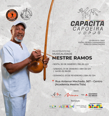 O Capacita Capoeira nasceu para preservar, compartilhar e fortalecer os saberes tradicionais da capoeira e das manifestações afro-brasileiras. Por meio de oficinas formativas e encontros culturais, 9 mestres experientes transmitem muito mais que técnica: passam história, cultura e valores da capoeira. Exclusivo para graduados, professores, mestres e contramestres que desejam se qualificar e elevar sua prática profissional na capoeira.